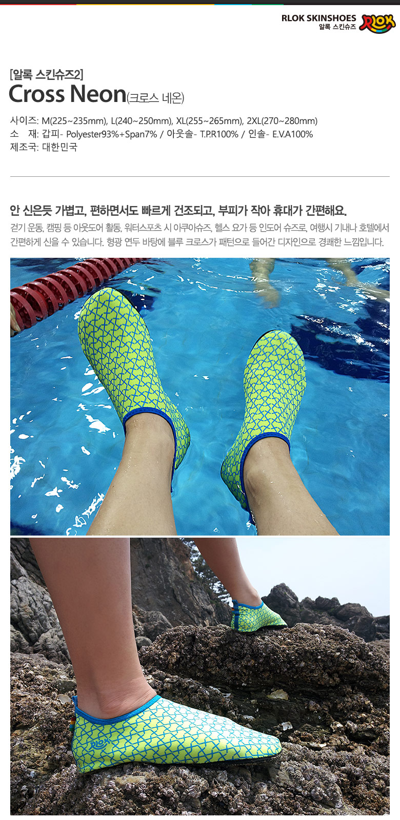 제품 소재 갑피: Polyester93%+Span7% / 아웃솔: T.P.R100% / 인솔: E.V.A100%