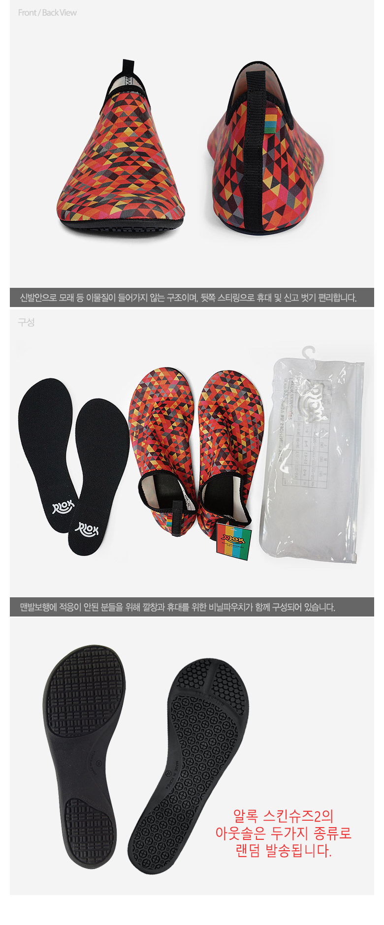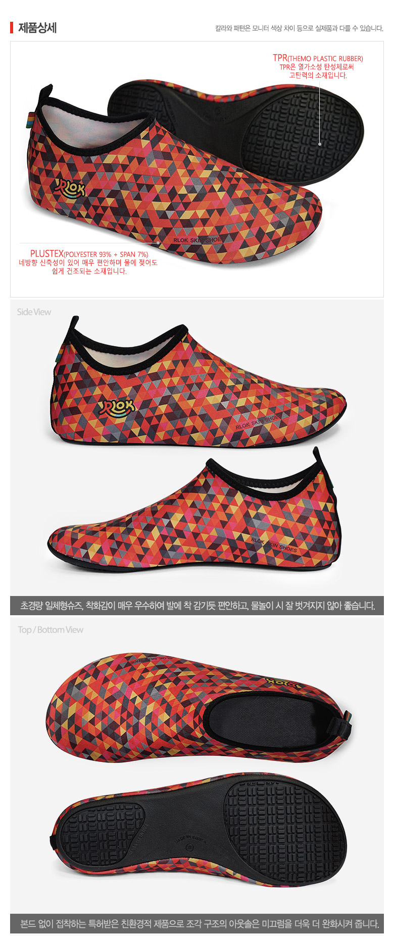 제품 소재 갑피: Polyester93%+Span7% / 아웃솔: T.P.R100% / 인솔: E.V.A100%