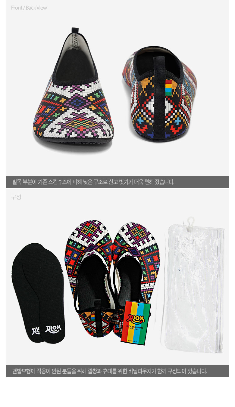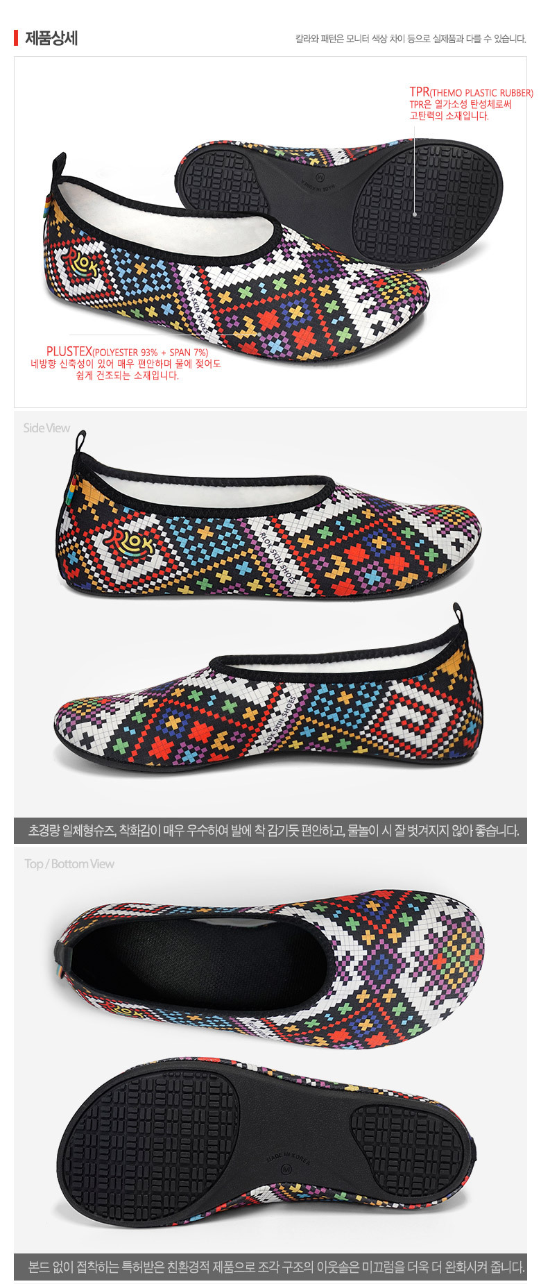 제품 소재 갑피: Polyester93%+Span7% / 아웃솔: T.P.R100% / 인솔: E.V.A100%