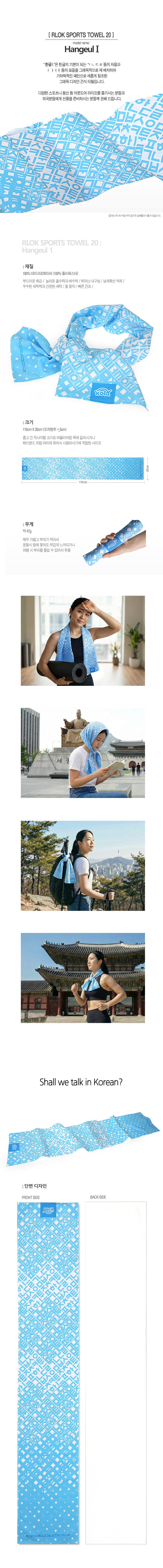 알록 > 알록 타월 > 스포츠 타월 > 타올 스포츠20 > 알록 스포츠 타월 20 - 한글 I (RTW14A)