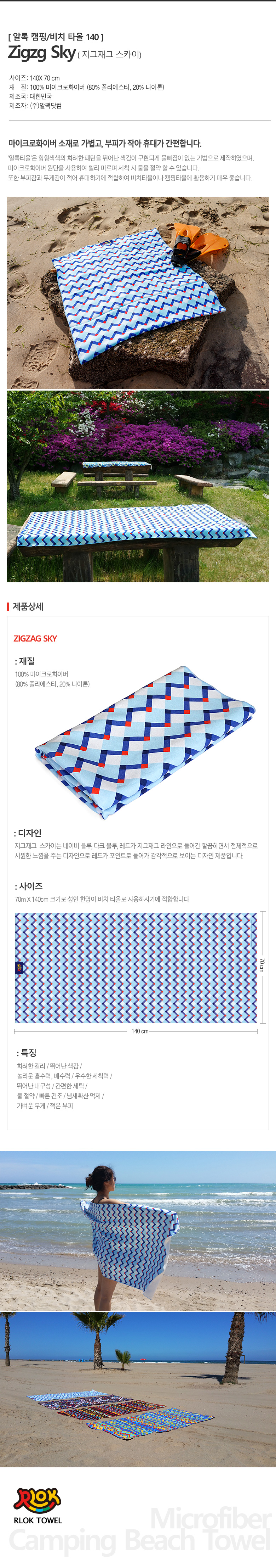 알록 > 알록 타올 > 캠핑/비치 타올 > 타올 캠핑/비치140 > 알록타올 캠핑/비치140 지그재그 (RTW04M)