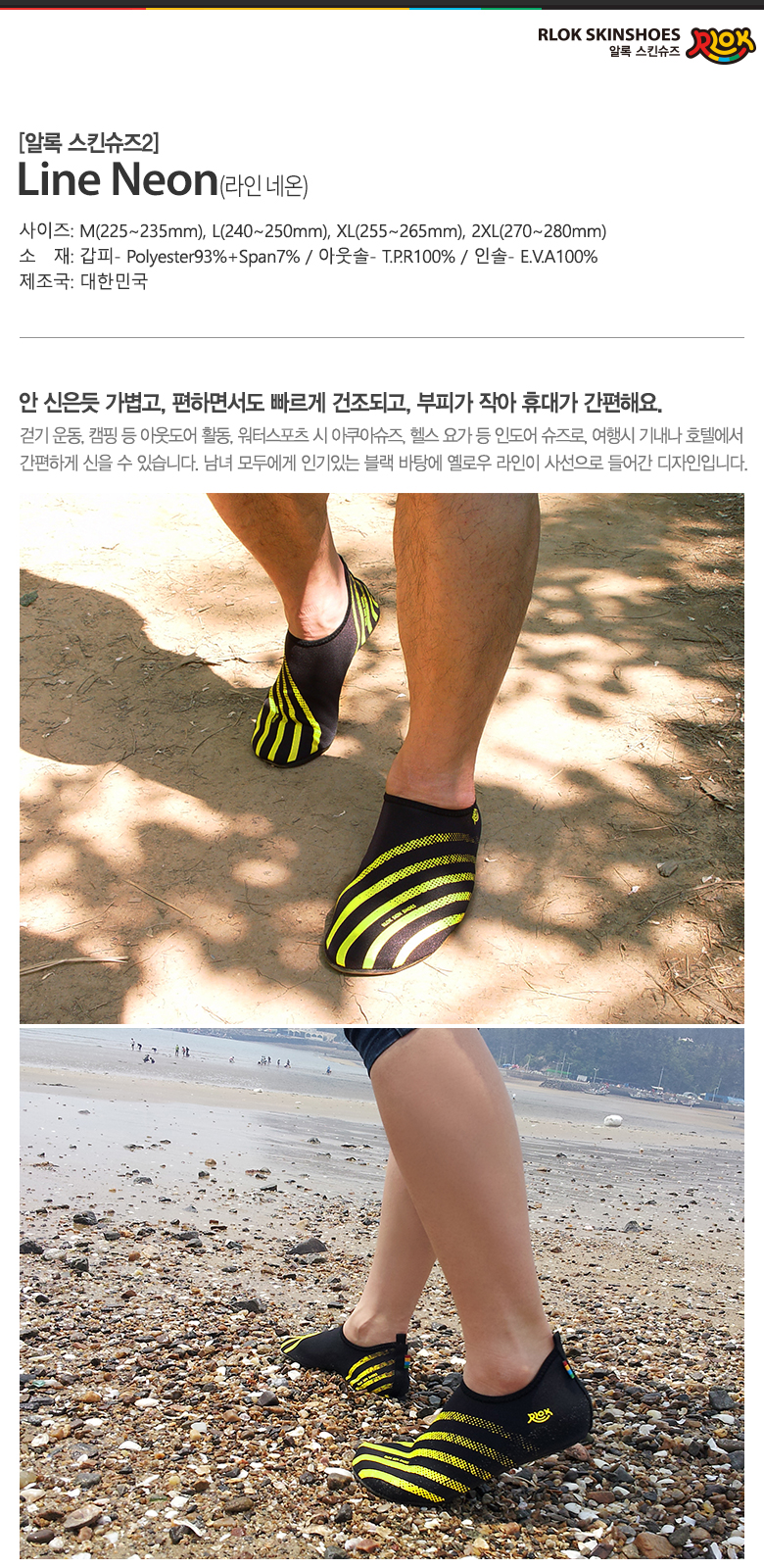 제품 소재 갑피: Polyester93%+Span7% / 아웃솔: T.P.R100% / 인솔: E.V.A100%